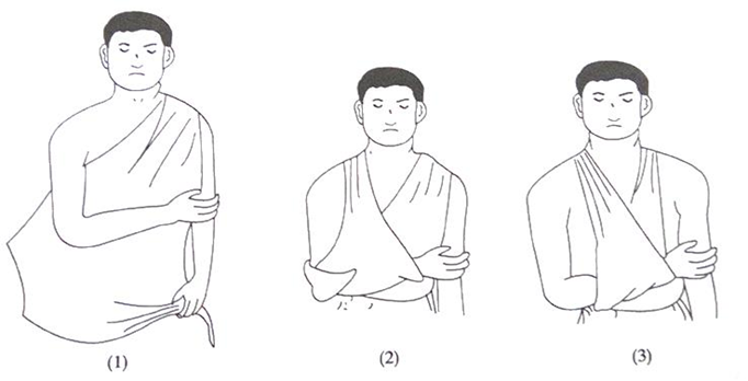 (4)肩部伤的包扎:①单肩包扎法:把燕尾巾夹角朝上,放在伤侧肩上。向后的一角略大并压住向前的角,燕尾底边包绕上臂上部打结,然后两燕尾角分别经胸、背拉到对侧腋下打结;②双肩包扎法:将三角巾叠成两燕尾角等大的燕尾巾,横放于背部,然后两个燕尾角各和底边在两侧腋窝下打结