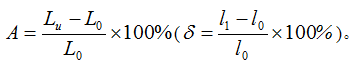 试样被拉断后,标距部分的残余伸长与原始标距之比的百分率称为断后伸长率A(d)。