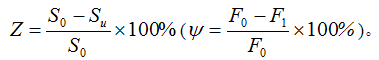 试样断裂后,断口处横截面积的减少值与原始横截面积的比值称为断面收缩率Z(y)。