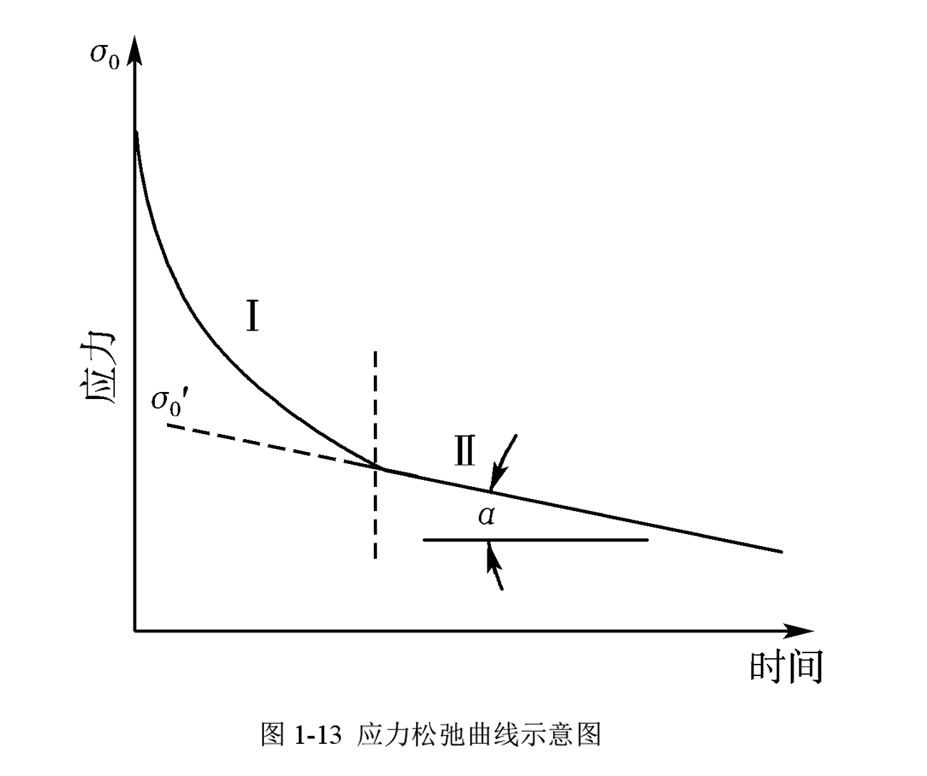与高温蠕变有关的另一重要现象是应力松弛。应力松弛是指在总变形量不变的条件下,材料应力随时间逐渐下降的现象。图1-13为应力松弛曲线示意图。对于在高温下使用的弹簧和紧固件,如螺栓、铆钉等,其松弛性能是很重要的,因为松弛将使这些零件不同程度地丧失弹性或紧固作用。松弛除与材料有关外,还与工作应力和工作温度有关。