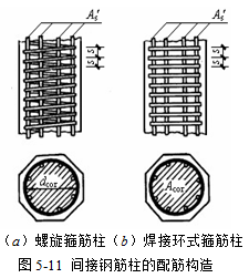 间接钢筋所包围的核心截面混凝土处于三向受压状态,其实际抗压强度因套箍作用而高于混凝土轴心抗压强度。这类配筋柱在进行承载力计算时,与普通箍筋不同的是要考虑横向箍筋的作用。