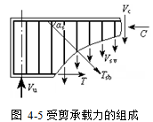 斜截面受剪承载力的计算是以剪圧破坏形态为依据建立的。我国采用理论与试验相结合的方法,主要考虑力的平衡条件,同时引入一些试验参数。其计算模型如图4-5所示,由发生剪圧破坏时力的平衡条件得