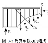式中:Vu——梁所能承受的总剪力设计值;Vc ——混凝土剪圧区所承受的剪力设计值;