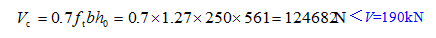 则 0.25 βc fc bh0=0.25×1.0×11.9×250×561=417.2kN>VA= 190kN