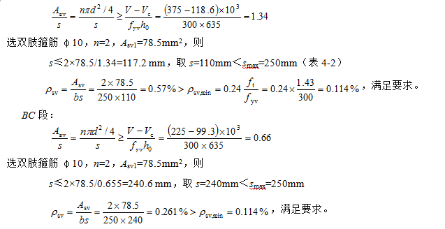 因此,AB段配双肢箍φ10@110,BC段配双肢箍φ10@240。