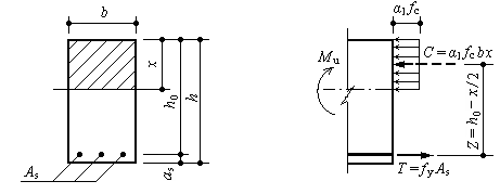 图3-15 单筋矩形截面受弯构件正截面承载力计算简图