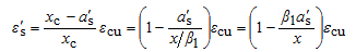 若取a's=0.5x,则由平截面假定可得受压钢筋的压应变ε's=(1-0.5β1)εcu。当混凝土强度等级为C80时,由εcu =0.003 ,β1=0.74,得:ε's=0.00189;其它级别的混凝土对应的ε's更大,对于HPB300、HRB335和HRB400级钢筋,其相应的压应力σ's已达到抗压强度设计值f 'y。因此双筋矩形截面梁计算中,纵向受压钢筋的抗压强度采用f 'y的必要条件是: