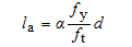 得出考虑主要因素即钢筋的强度、混凝土的强度和钢筋的表面特征,得到当计算中充分利用钢筋的抗拉强度时,受拉钢筋的基本锚固长度计算公式为: