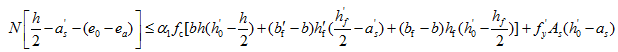 Ne≤α1 fc [bx(h0-0.5x)+(bf' -b)hf'(h0-0.5hf')] + fy′As′(h0- as') (5-51)