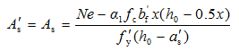 Ne≤α1 fc bf'(h0-0.5x)+ fy′As′(h0- as') (5-49)