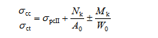 式中:sx——由预应力和弯矩Mk在计算纤维处产生的混凝土法向应力;