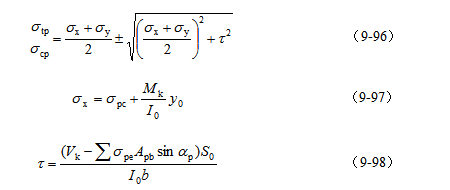 由于斜裂缝出现以前,构件基本上还处于弹性工作阶段,故可用材料力学公式计算主拉应力和主压应力。即