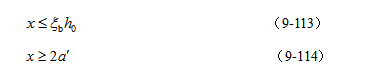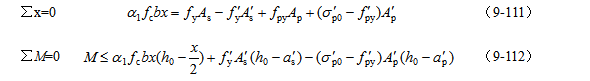 式中:a'——受压区钢筋合力点至受压区边缘的距离;当s¢p0-f¢py为拉应力或A'p=0时,式(9-114)中的a' 应用a's代替。