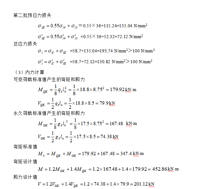 对于预应力混凝土受弯构件的设计计算,主要包括预应力张拉施工阶段的应力验算、正常使用阶段的裂缝控制和变形验算、正截面承载力和斜截面承载力计算及施工阶段的局部承压验算等内容,其中使用阶段的裂缝控制验算包括正截面抗裂和裂缝宽度验算及斜截面抗裂验算。