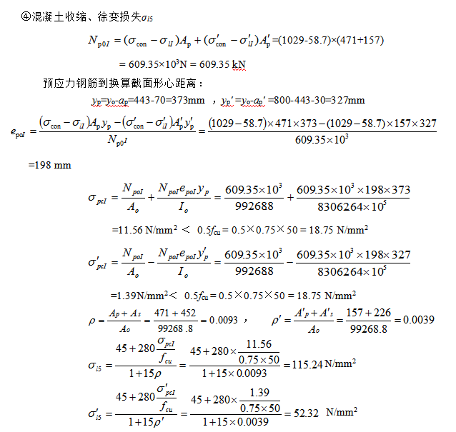 spc——扣除全部预应力损失后,在计算纤维处由预应力产生的混凝土法向应力;