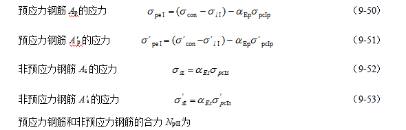 Np0——计算截面上混凝土法向应力为零时的预应力钢筋和非预应力钢筋的合力,按式(9-102)计算。当Np0>0.3fcA0时,取Np0=0.3fcA0。