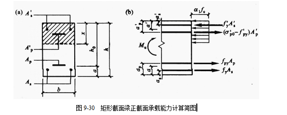 矩形截面预应力混凝土受弯构件,与普通钢筋混凝土受弯构件相比,截面中仅多出AP与A'P两项钢筋,如图9-30所示。
