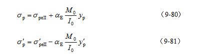 spcIp(spcIIp)、s'pcIp(s'pcIIp)——荷载作用的受拉区、受压区预应力钢筋各自合力点处混凝土的应力。