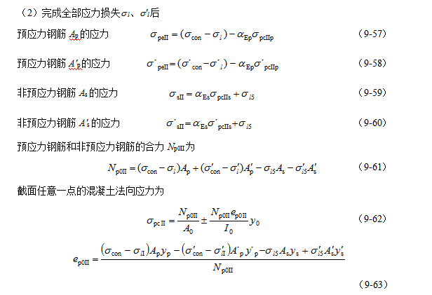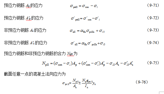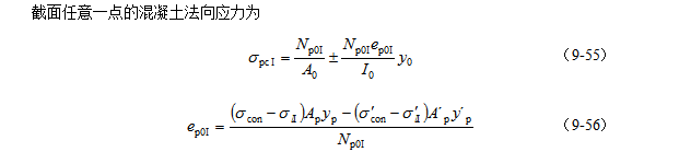 spcII——预应力作用下验算边缘的混凝土法向应力。可由式(9-62)、式(9-76)求得;