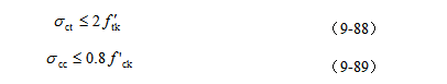 式中,scc、sct——相应施工阶段计算截面边缘纤维的混凝土压应力、拉应力;