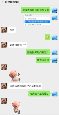 在我看来,我们本次团队组合构架合理,课程所有专业教师均为中共党员,教师涉及的研究方向为:艺术设计方向、美术学绘画方向,思政方向等;综上几点完全可以保证本课程的顺利开展和实施。这是我们的优势。新媒体广告设计是网媒专业一门重要的专业课,我们团队的老师在进行理论授课时将社会主义四个自信中的文化自信灌输到学生的专业创作中去,提倡学生确立文化自信,提取中国传统艺术的元素来进行创作,作品贴近生活从丰富的传统文化中吸取养分,作品内容更加自信地传承、弘扬中华文化,创作出具有中国精神、作品。