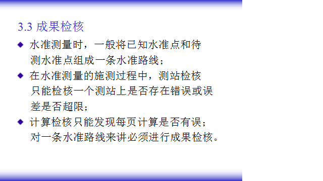 校核方法:如果fh≤fh容,说明外业观测成果合格,否则须进行重测。