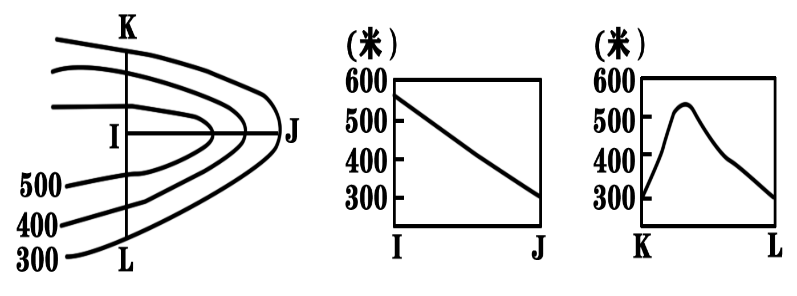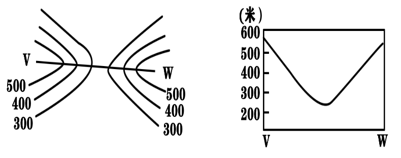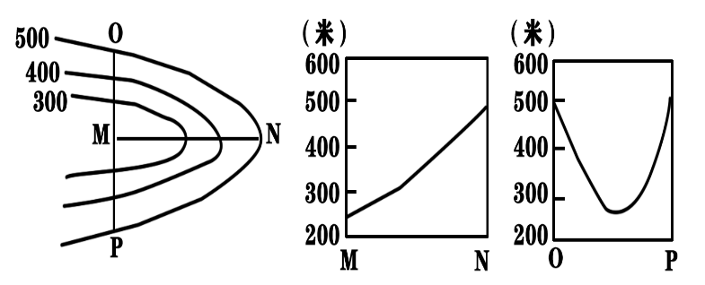 (1)确定是否通视:通视问题可通过作地形剖面图来解决。如果过已知两地作的地形剖面图无障碍物(如山地或山脊)阻挡,则两地可互相通视。①“凹形坡”与“凸形坡”对通视的影响。从山顶向四周,等高线先密后疏,为“凹形坡”,可通视;等高线先疏后密,为“凸形坡”,“凸形坡”容易挡住人们的视线。见下图。
