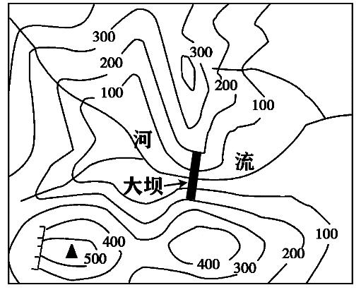 a:坝址应选在等高线密集的河流峡谷处,因为该处筑坝工程量小,且地势落差大。