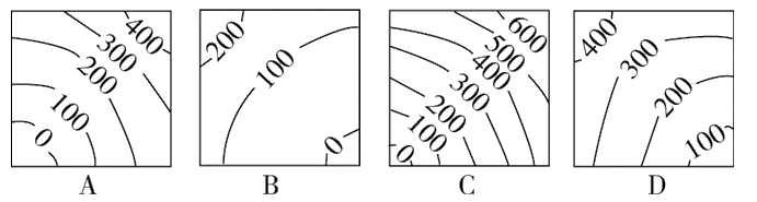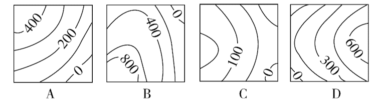 ②比例尺相同,等高距不同,则相同的水平范围等高距越大,坡度越大;等高距越小,坡度越小。例如,下图中(比例尺相同,数值单位: m)的坡度由大到小的顺序为: B>D>A>C。