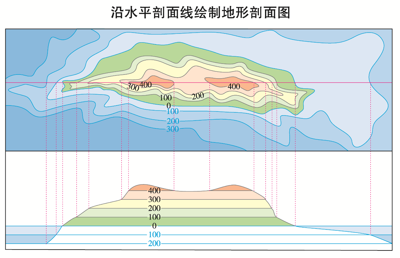 | 在同一幅等高线地形图上,同一条等高线上各点的海拔(又称高程)相同 |