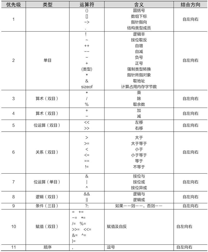 • 3 C语言运算符表