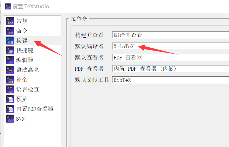 4. 构建 -> 默认编译器 -> XeLaTeX