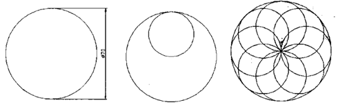 (3)执行阵列命令,以大圆圆心为阵列中心点,将小圆进行环形阵列成8个,阵列后的效果如图。