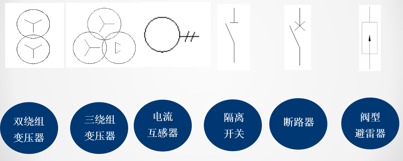 三绕组变压器是在双绕组变压器基础上先旋转负30度,利用镜像命令镜像圆,删除多余线条,再利用正多边形命令绘制三角形,利用直线对三角形进行裁剪。