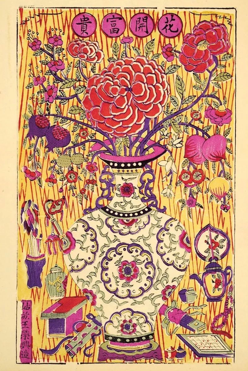 苏州桃花坞木版年画《花开富贵》