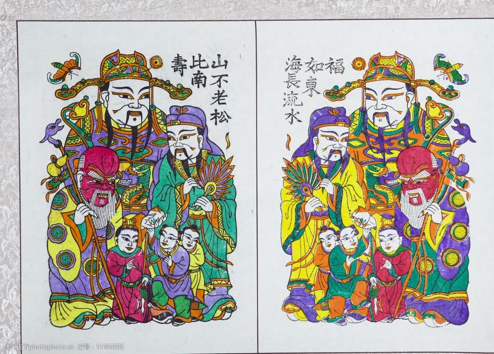 河南朱仙镇木版年画《寿比南山福如东海》