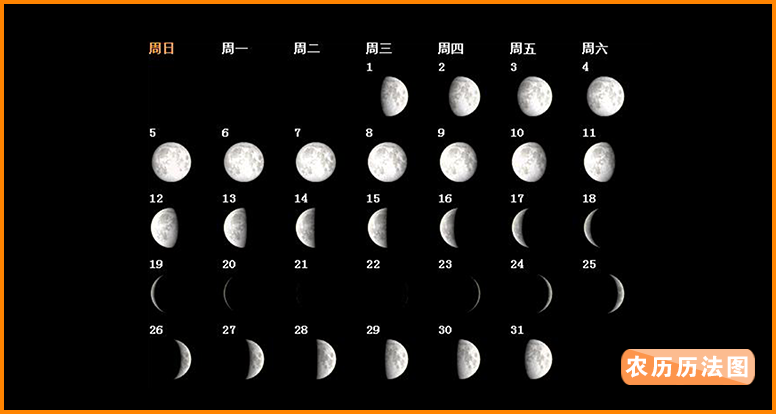 日食一定发生在朔,即农历初一当日。此时月球位于地球和太阳之间时,但因地球轨道(黄道)与月球轨道(白道)成5°9′交角,故并非每次朔日皆有日食发生,而日食发生时,日月两者皆一定在「黄白交点」(升交点或降交点)附近发生。日食发生在新月时,也就是农历初一左右。相反月食发生在每月十五左右的满月时。这时,月球运行进地球的阴影中。由于地球在月球轨道处的投影总比月球大,所以月环食的情况是不会发生的。月全食每13.5个月发生一次,月偏食的情况少些,约22个月一次。