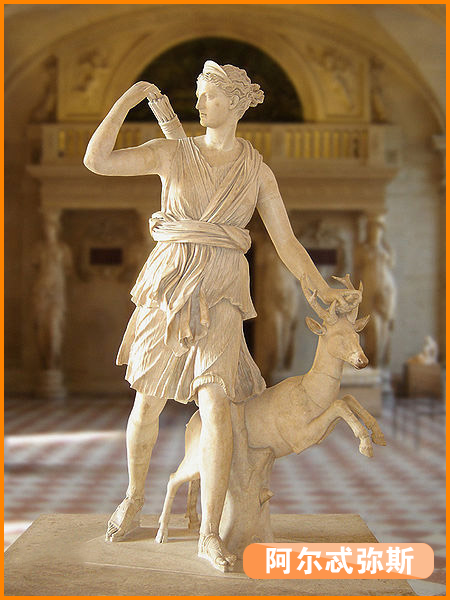 阿尔忒弥斯象征女性的纯洁美,是三大处女神之一。她自由独立,热爱户外生活,反对男女婚姻。在以弗所有专门为她建筑的亚蒂密神庙,后被纳入世界八大奇迹之一。