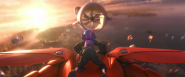 小宏骑在大白上在云间穿梭,主体物不变,但是背景在变化。给观众一种跟随主体角色一起翱翔云间的感觉。