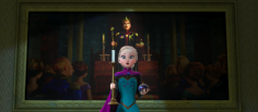 大公主艾莎站在老国王登基的画像前,做着相同的仪式动作,象征着新的领导人即将登基。