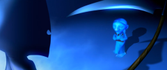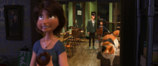 在《老太太与死神》中,镜头起幅时,老太太卑微的站在画面右侧等待着死神的到来。接着死神从画面左侧走位入画,当镰刀落地时,老太太的头顺势低下,表示认命、臣服。但当想起老先生后,就勇敢的向死神发问。画面从透视角度看去,锋利的镰刀一直位于老太太的头上,象征着死神的权利与威严。