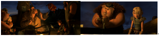 在《驯龙高手》中,一群人围坐在篝火边聊天,人物位置形成圆圈状。场景开始,先给3个外围镜头,交代人物之间的位置关系。然后,从人物围成的圆圈状中间,依次给说话人物镜头或需要表现人物的镜头。最后,还是将多人对话,处理成常规的对话镜头。