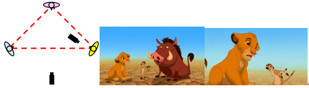 辛巴、丁满和彭彭就形成了三轴线的对话镜头。
