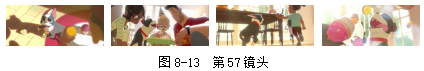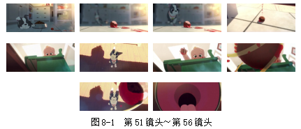 在第51镜头~第56镜头中,主要表现随着小主人的出现,小狗温斯顿又可以吃喜欢的高热量食物了,如图8-13所示。