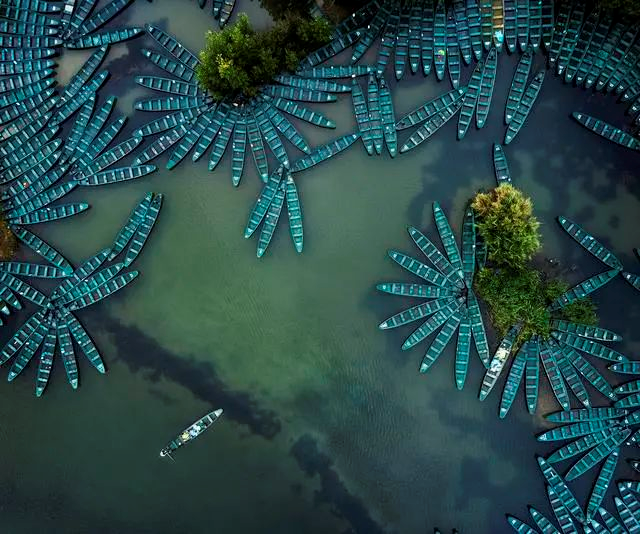 直线可能会使画面看起来比较单调,折线或曲线则会更有韵律感。高角度航拍可以打破传统拍摄的限制,更容易发现生活中存在的特殊图形,在构图时巧妙利用这些图形能够为画面增添色彩。