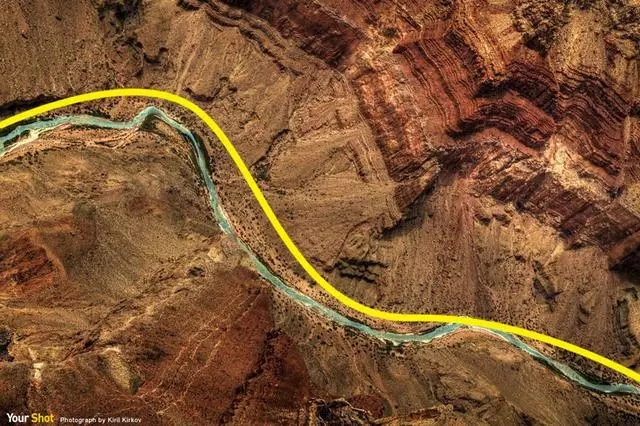 利用线条构图也是航空摄影中比较常见的方法:水平可以用来表现宏大、广阔的场景,给人以稳定安宁的观感;引导线则引导观众目光随着线条延伸;曲线更加灵活多变,适用于拍摄河流、溪水、曲径、小路等;对角线能够将照片中视觉引导线沿对角方向展开,起到平衡画面,增强画面立体感、延伸感的作用。