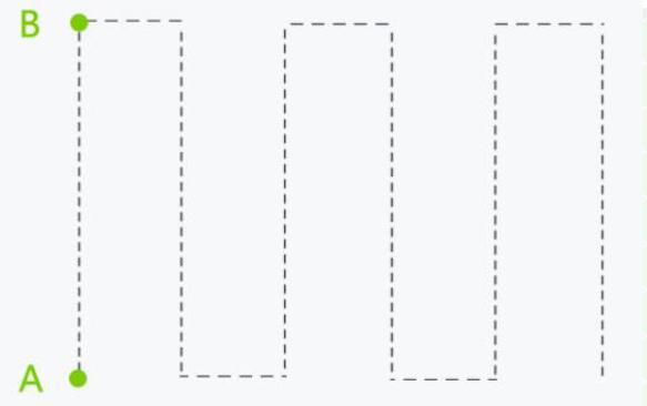AB点作业模式是指,以AB点形成一条直线,以这个直线形成航线的自动作业方式,具有灵活方便、自动作业、喷洒均匀的优势。但是只适合于规整地块,对于不规则地块难以进行作业。