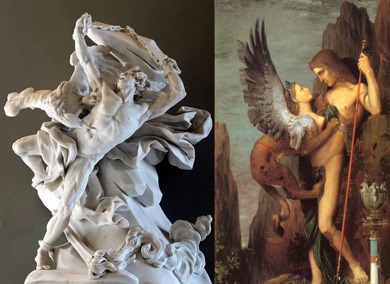 古希腊是一个从事航海商业的奴隶制社会,向外开拓、勇于斗争是希腊人的精神,因此在希腊艺术中有人与自然不懈斗争的悲剧:《被缚的普罗米修斯》《俄狄浦斯》《拉奥孔》,别林斯基对埃及人和希腊人的精神及艺术做过比较:“埃及的斯芬克斯(狮身人面像)比人高明,他向人提出狡猾的谜语,人不会猜,他就把人吃掉。但是,希腊人俄狄浦斯却识破秘密答出了谜语,野兽投海尼斯了,人才开始行使权力,——而希腊的众神不是别的,正是理想的人的形象,人的神化。”