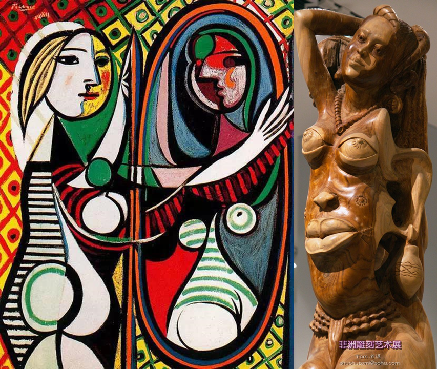 就在中国艺术家放眼世界的时候,欧洲艺术家逐渐摆脱了“欧洲中心论”的狭隘眼光,看到了欧洲之外的的五光十色的艺术世界,他们哀叹求真写实的传统艺术没落的同时,赞叹非洲及东方艺术的勃勃生机。正像中国的艺术家感到自己传统艺术的群途末路一样,西方艺术家也感到自己传统艺术的群途末路。他们说,求真写实的艺术只是自然物的玻璃外壳,人们从一座女性雕像中看到的只是一个真实的女人,难道艺术的魅力就在这里?在摄影技术高度发达的现代,这种艺术只能浪费艺术家的精力和欣赏者的时间。贝尔说:“再现往往是艺术家低能的标志。”出路只有一条:向中国、日本、非洲学习。