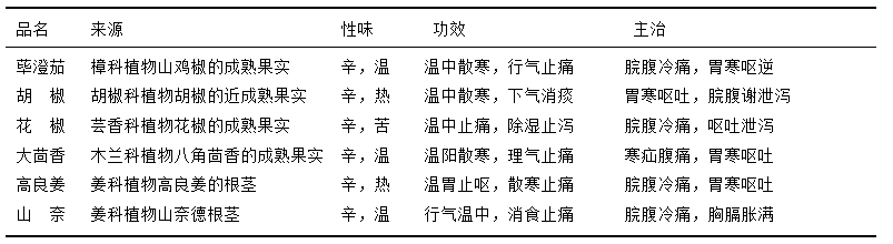 1.中寒呕吐,呃逆,脘腹冷痛。